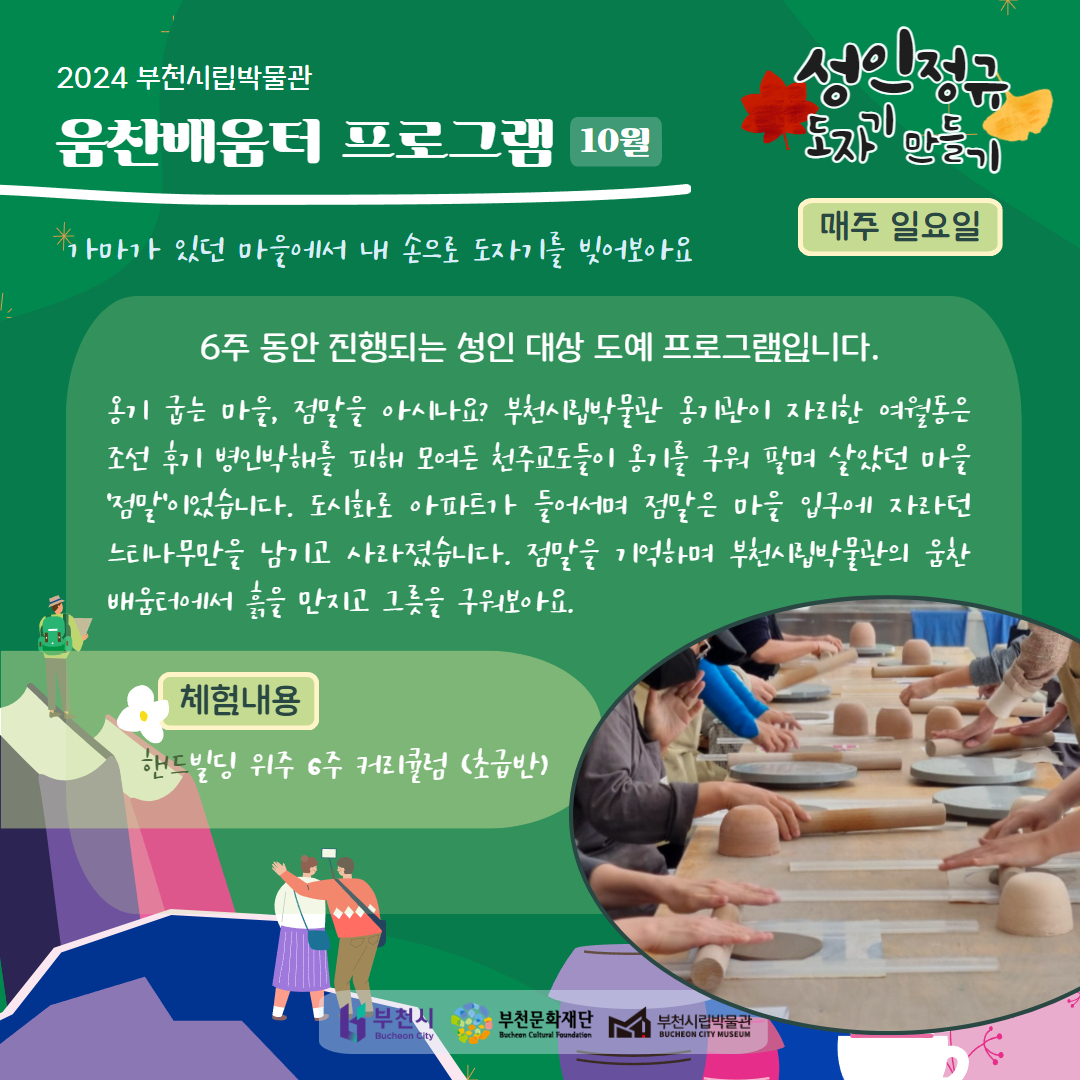 점말을 기억하며 부천시립박물관의 움찬배움터에서 흙을 만지고 그릇을 구워보아요.