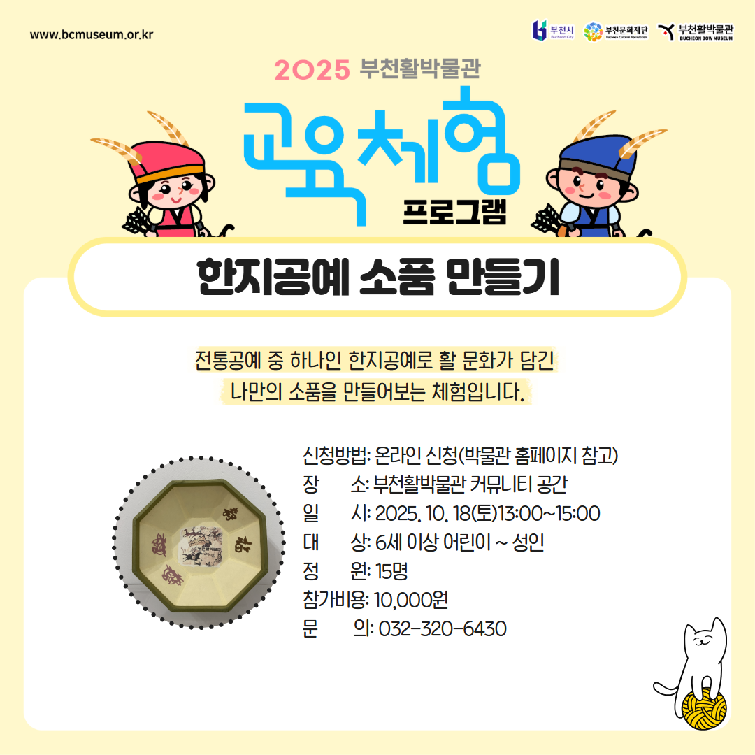 ☐ 프로그램: 한지공예 소품만들기(10월) / 10월 체험 주제: 팔각과반