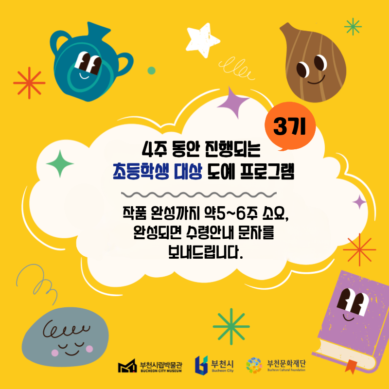 4주 동안 진행되는 초등학생 대상(토요일_오전반/오후반) 도예 프로그램입니다.