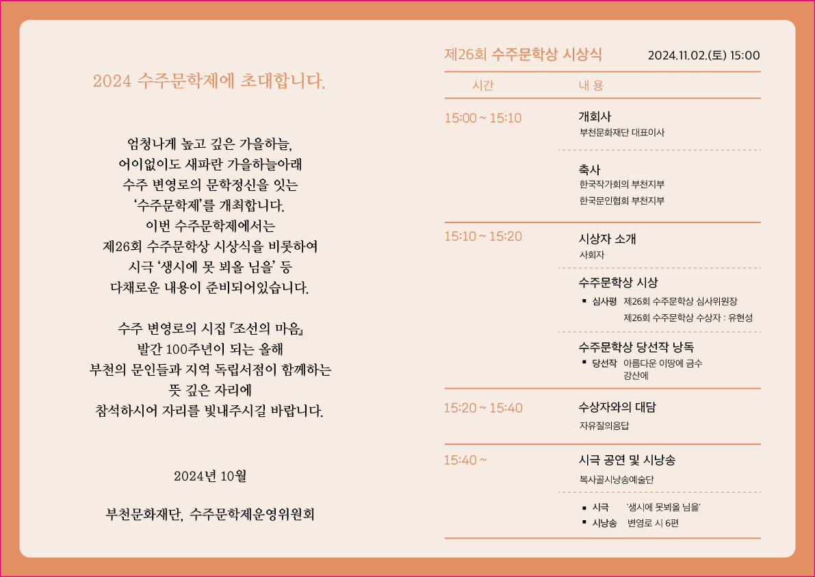 ❍ 주 관 : 부천문화재단, 수주문학제 운영위원회