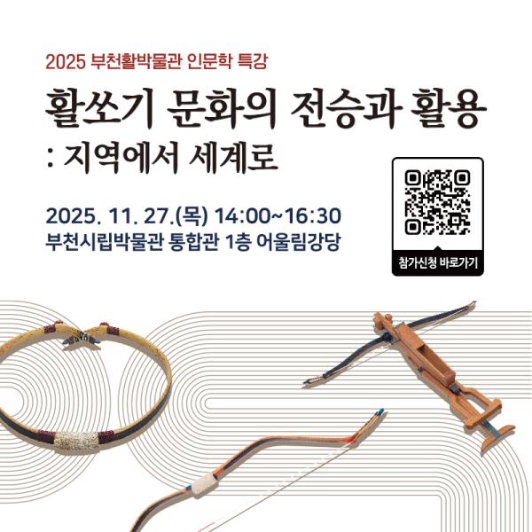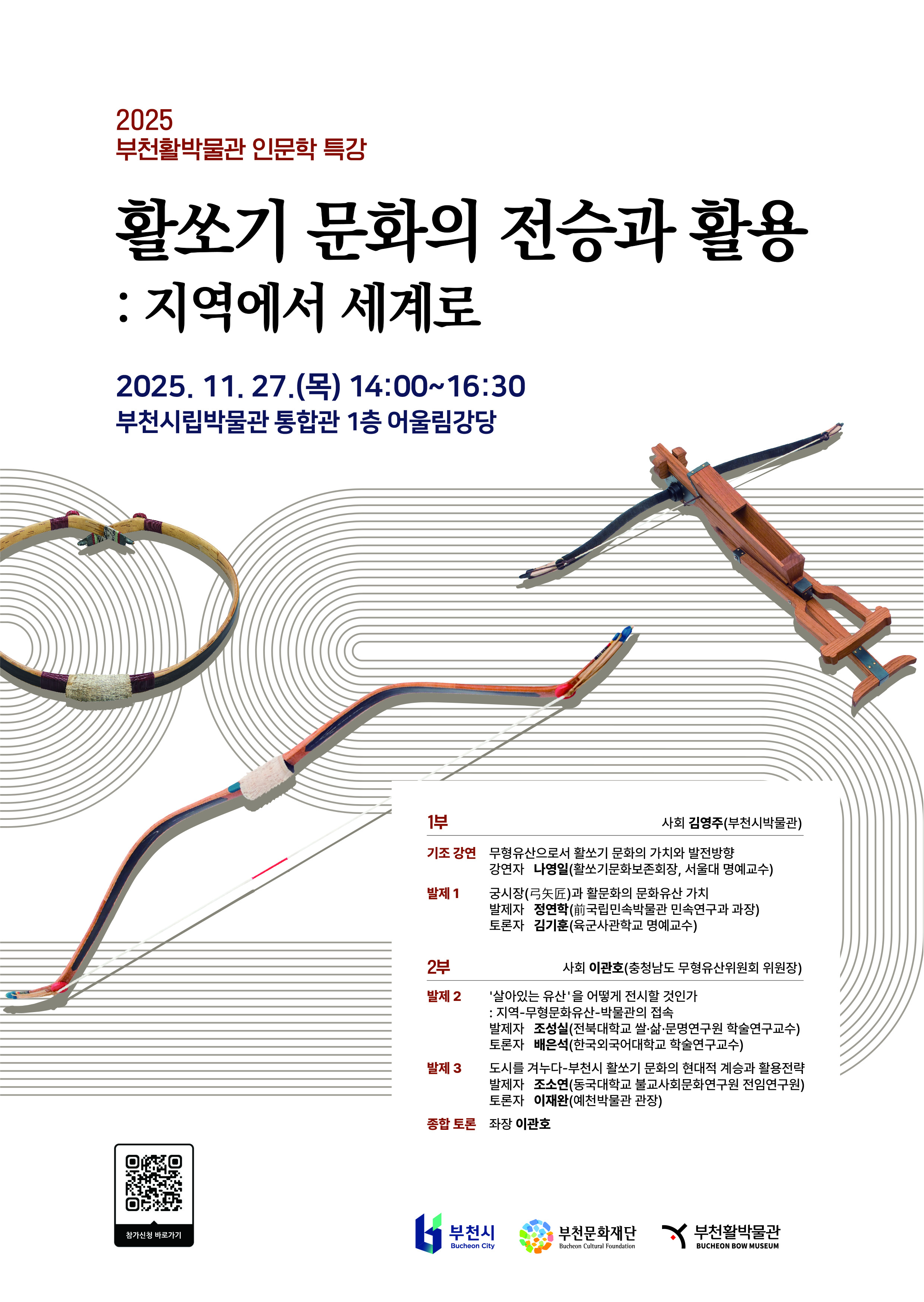 부천활박물관은 오는 2025년 11월 27일(목) 오후 2시, 「활쏘기 문화의 전승과 활용」을 주제로 학술세미나를 개최합니다.